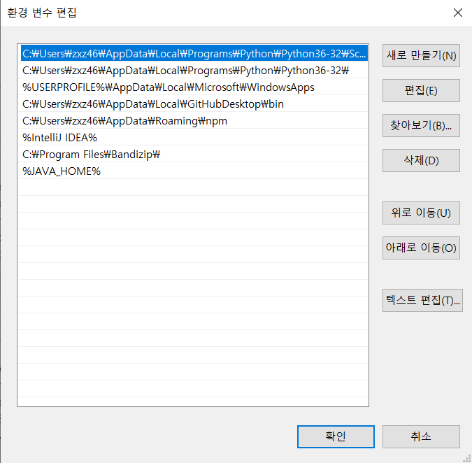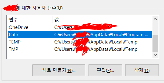 다음과 같이 Path를 누르시고 편집 눌러주세요.