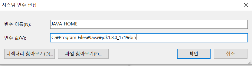 | JAVA_HOME | C:\Program Files\Java\jdk1.8.0_171\bin |