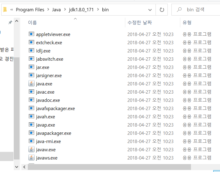 설치할 때 그냥 next만 하셨으면 자바 파일 경로가 위의 경로와 같을 거예요.